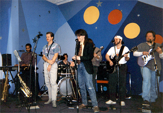 March 11th, 1995 at Planet Music w/ Brian Jarboe from WTMD-FM (soon to become a group member due to Bill's hand injury). One of Eric's first gigs and one of my favorite stores! Officially became the Richard Walton Group. l-r Eugene, Joe, Eric Robertson, Brian Jarboe, RW, David, Bill. (photo: unknown) |