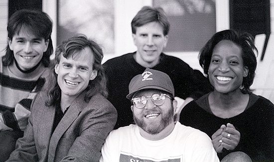 Featuring our new keyboardist: Deena Gift. A before rehearsal shot. l-r: Brian, RW, David, Eric, Deena (photo; unknown)