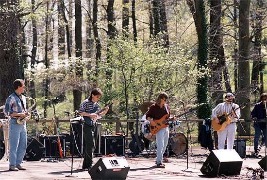 RWG at the Lurman Woodland Theatre in April 1997 for 'The March For Parks' benefit. l-r Joe, Brian, RW, Eric, David, Deena (photo: unknown)
