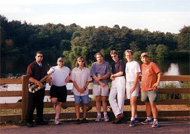 Centennial Park, July 2000. With both horn players and new percussionist Mitchell Shaivitz. Over 1500 people in attendance on a beautiful summer's night! l-r Jacob, David, RW, Mitchell Shaivitz, Eric, Joe, Andrew. (photo: Kathie Walton) |