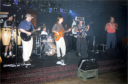 "Hear And Now" release party at Nottingham's in Columbia, Md. l-r Mitchell, David, Eric, RW, Deena, Andrew, Joe. (photo: Kathie Walton)