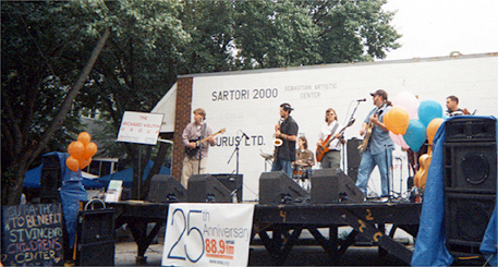 RWG at Mt. Washington Wine & Jazz Festival, sponsored by WEAA-88.9FM. October 13, 2002. l-r Andrew, Jacob, Dan Marcellus, RW, David, Mitchell. (photo: Steve Fraser)